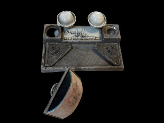 Antique US Navy Inkwell Desk Set – Battleship USS Maine Stamp Relief