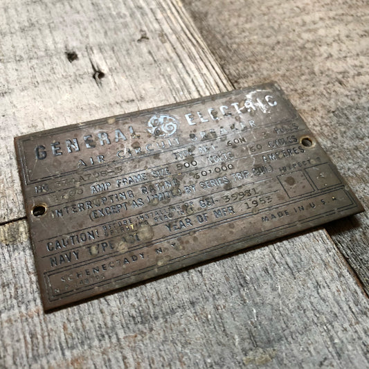 General Electric Air Circuit Breaker Plate