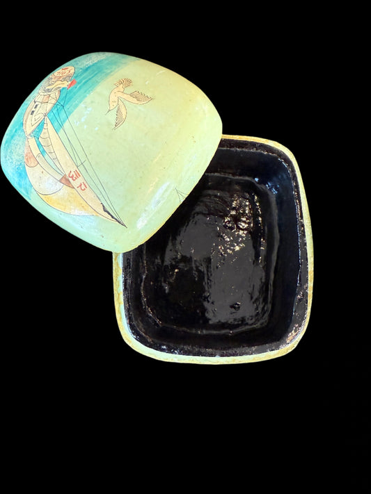 Vintage Hand-Painted Papier-Mâché Box – Sailboat Design (Made in India)