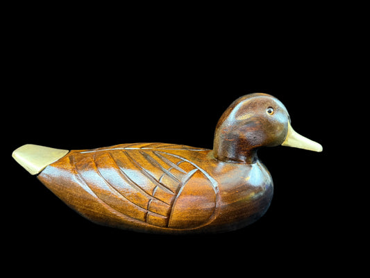AMA Hand Carved Wooden Duck with Brass Tail and Beak
