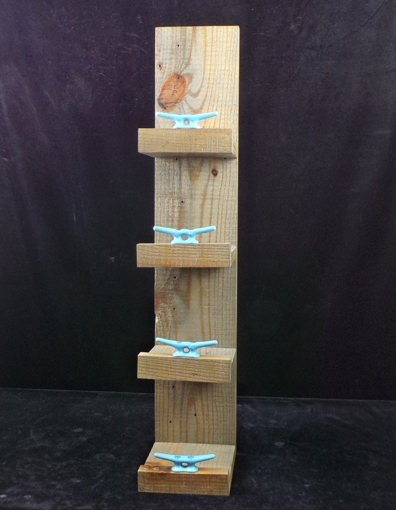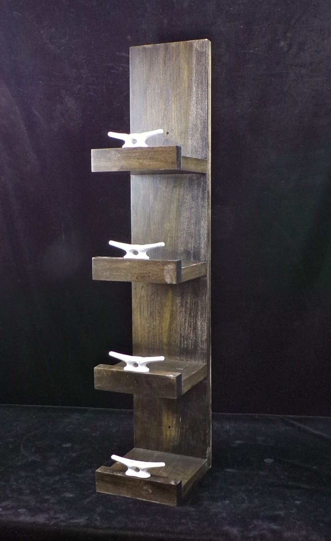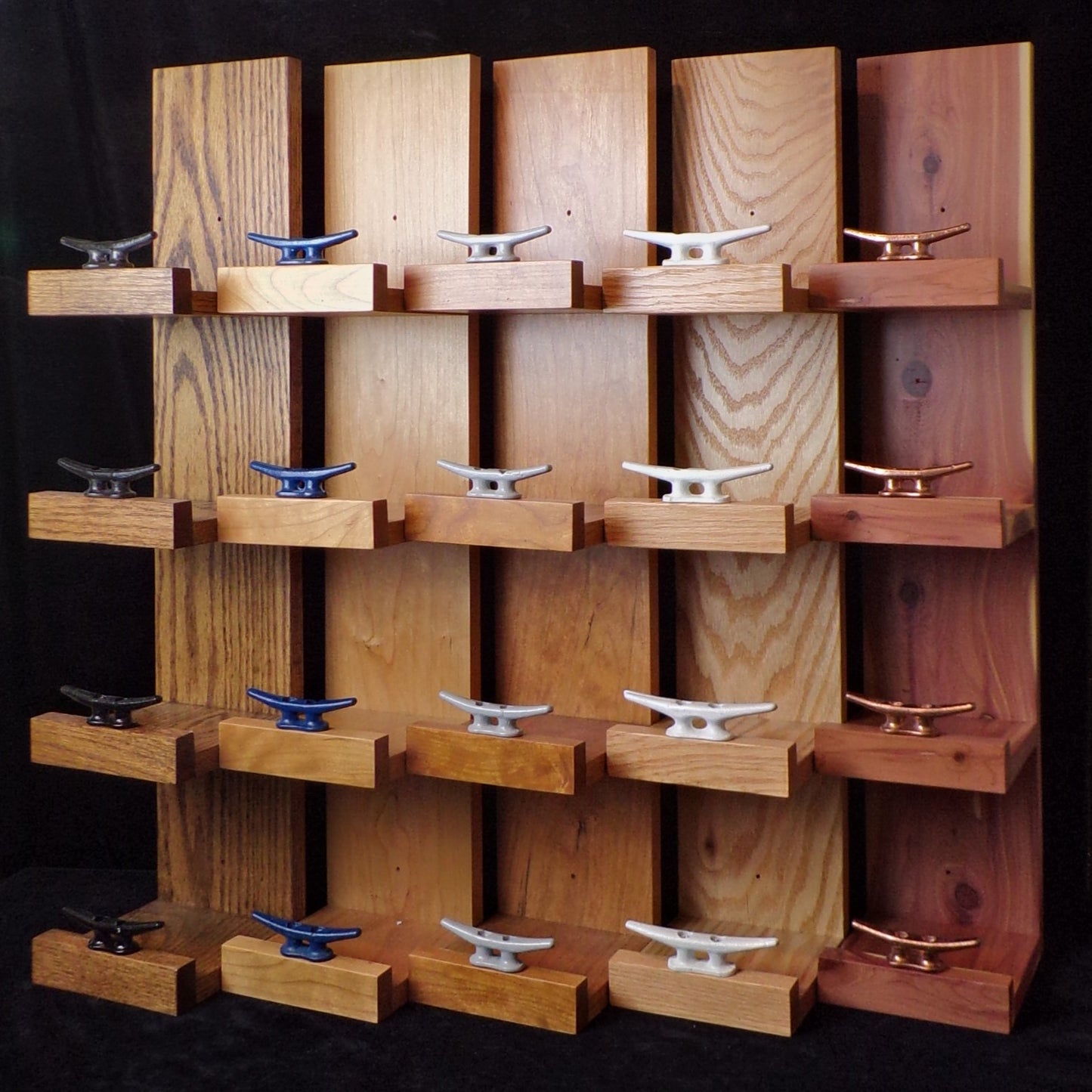 Handmade by our Artisans at Annapolis Maritime Antiques. A variety of wood types, and cleat colors, this is a perfect way for some vertical storage and some charm.