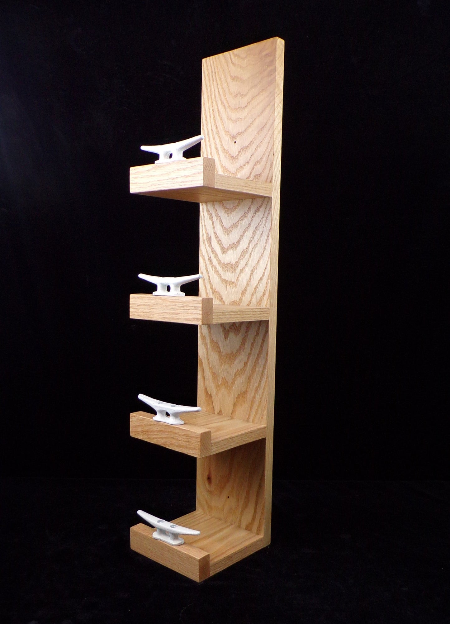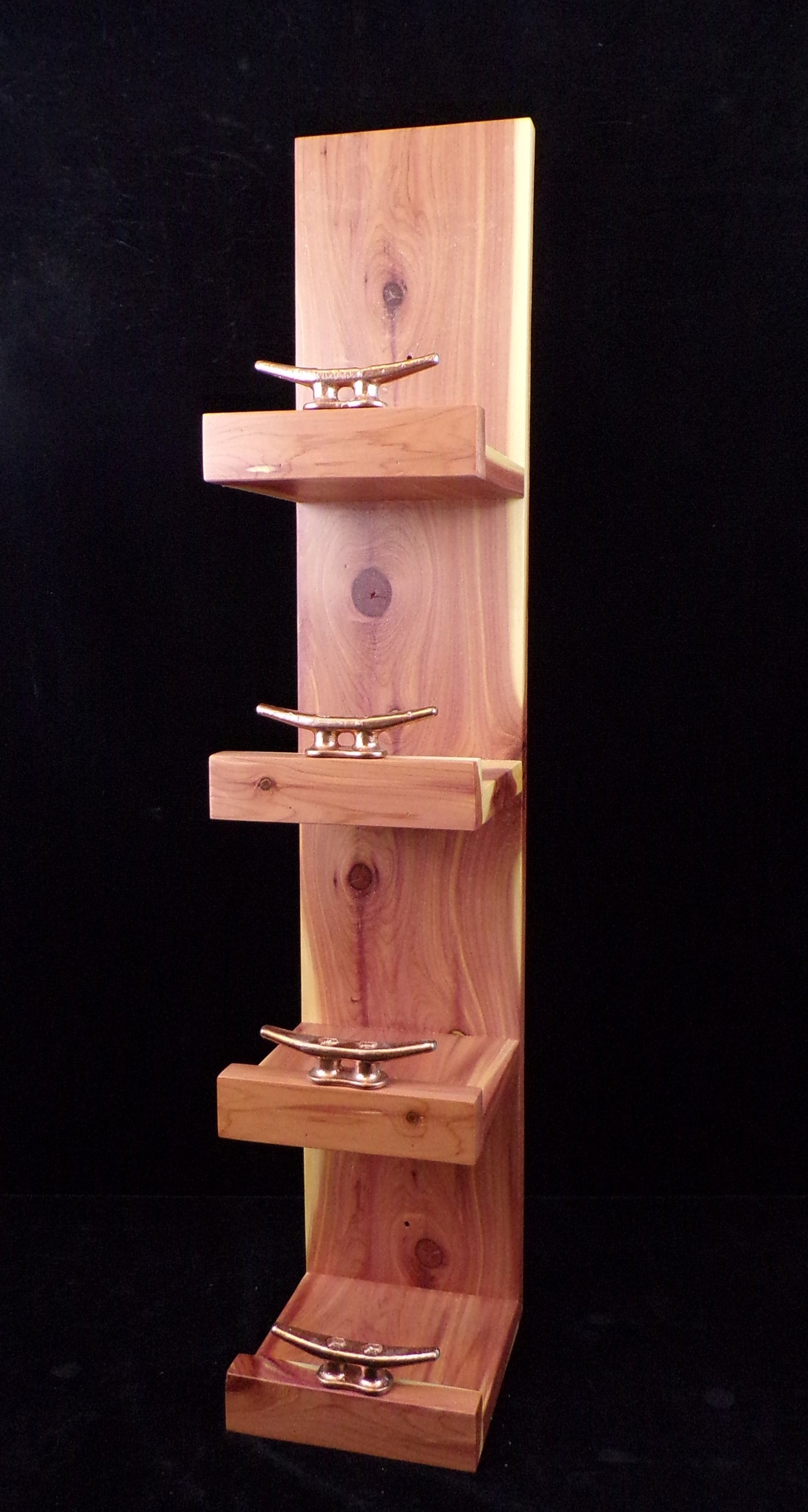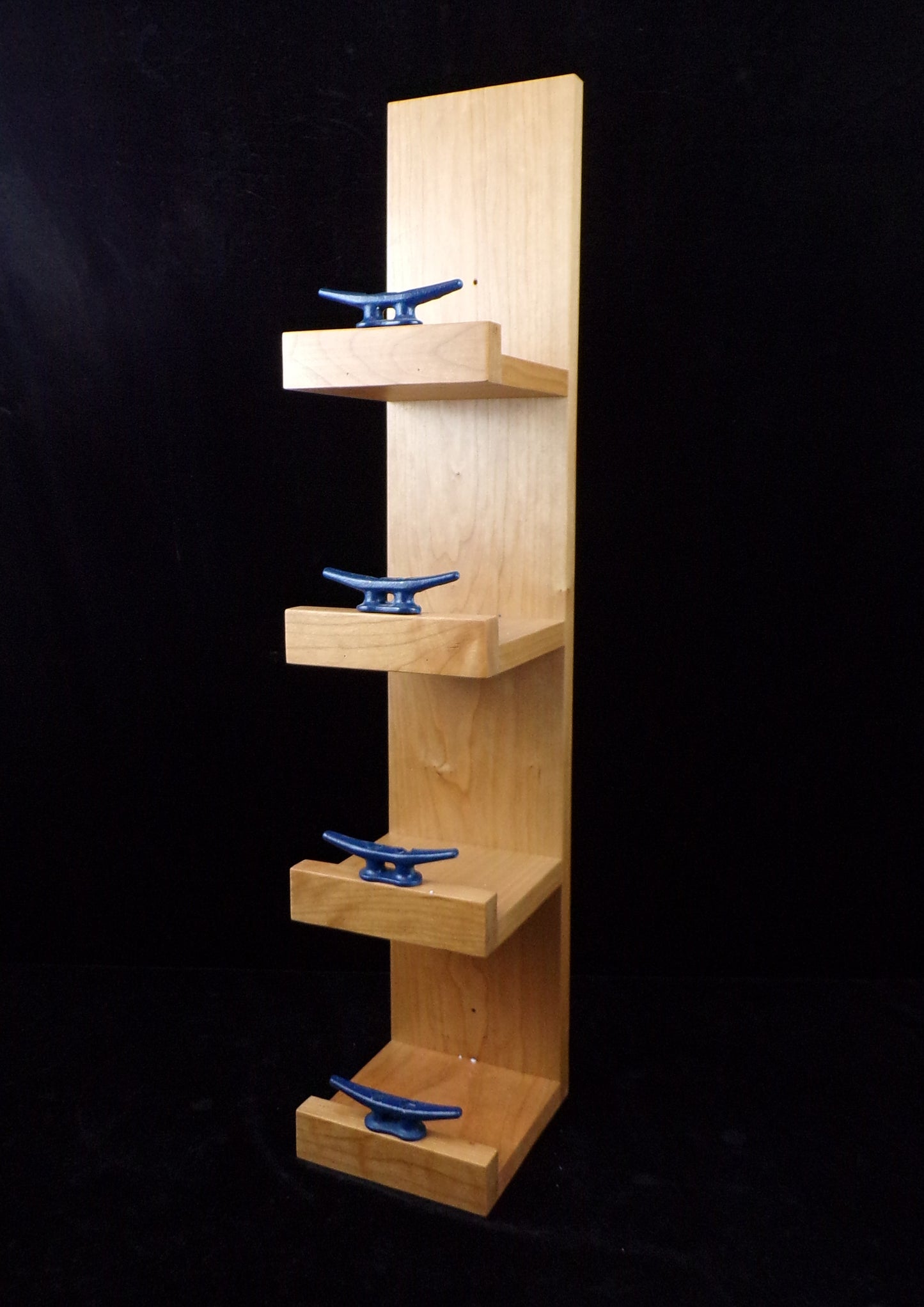Handmade by our Artisans at Annapolis Maritime Antiques. A variety of wood types, and cleat colors, this is a perfect way for some vertical storage and some charm.