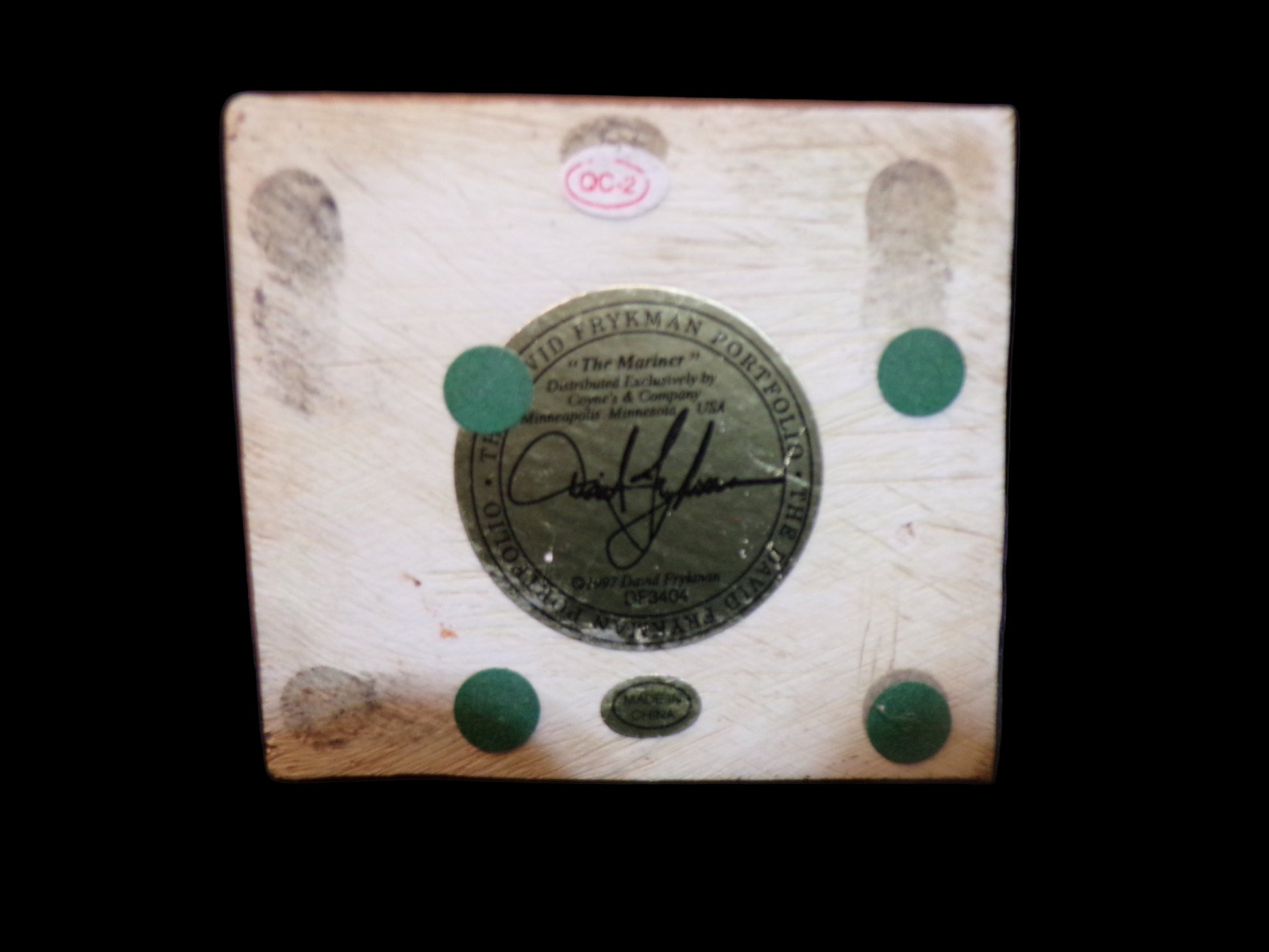 Original foil label on bottom with Frykman’s printed signature