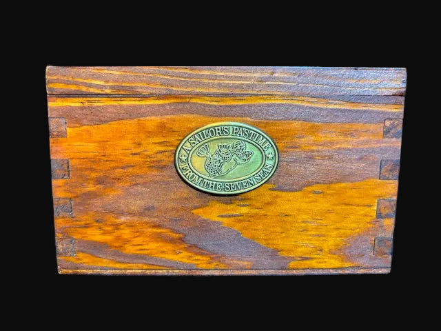 The kit is housed in a solid wooden dovetailed box with a brass medallion reading “A Sailor’s Pastime from the Seventeenth Century,” making it equally suitable as a decorative display piece or hands-on craft kit.