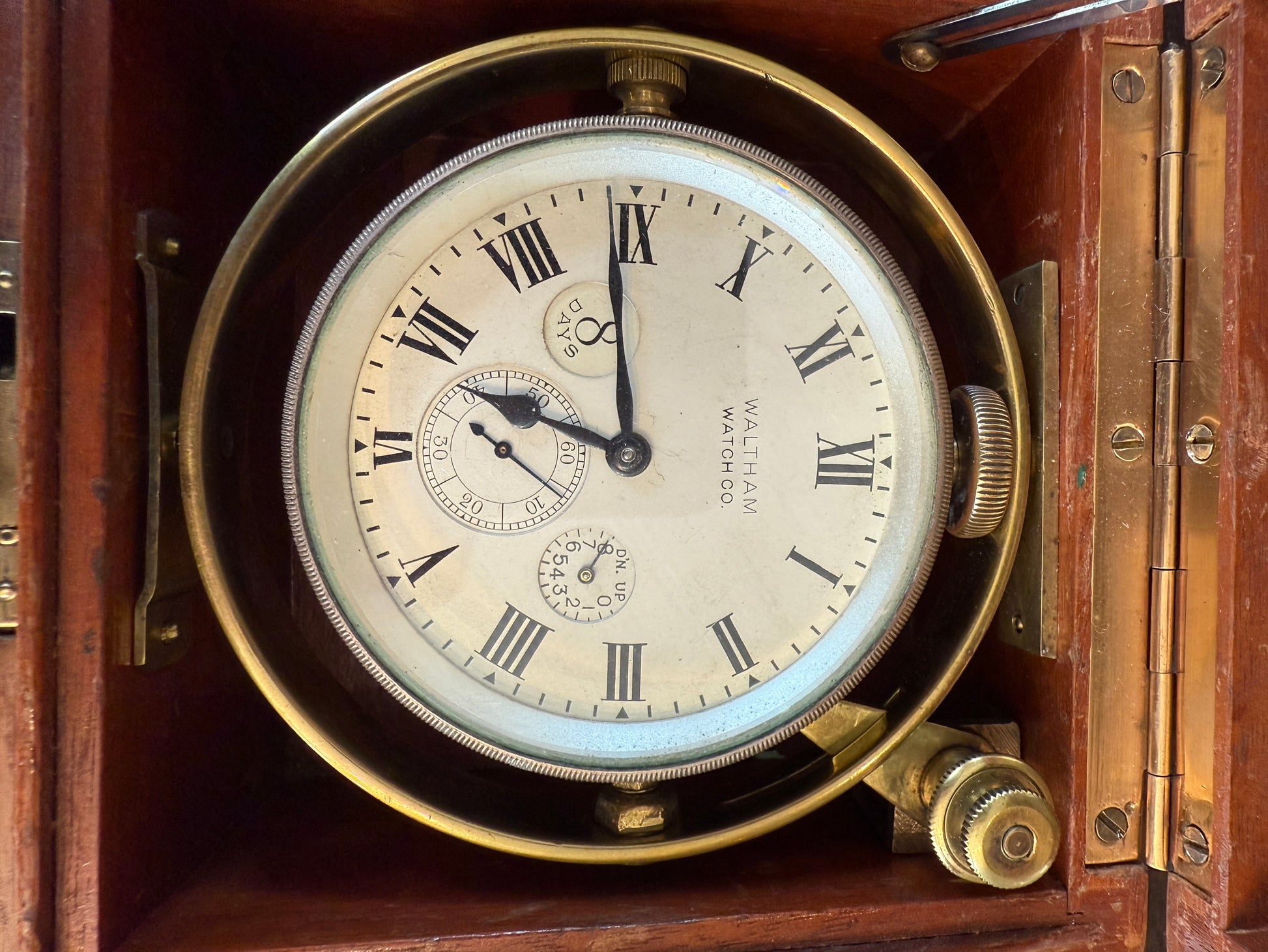 Antique Waltham 8-Day Gimbaled Chronometer – U.S. Navy Issue, Circa 1918
