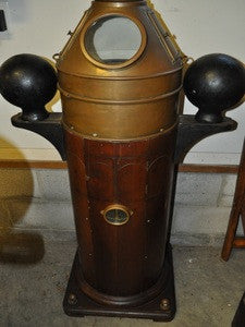 This binnacle is one of the newest in the shop. It contains a Wilfred White dry card compass serial # 1706 and was made in Scotland in the late 1800’s. This piece is in excellent condition and measures 53” high x 31” wide.