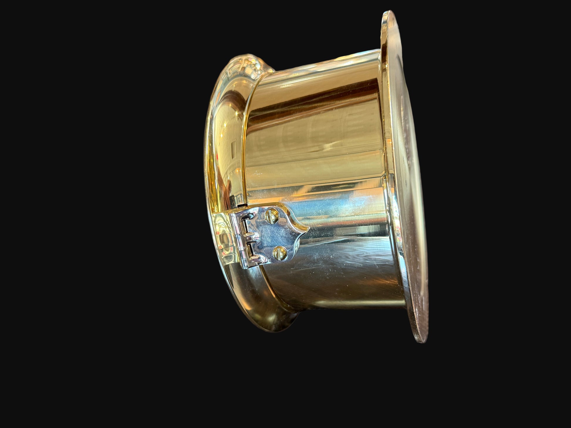 This is a beautiful Chelsea Ship’s Bell Clock, featuring a 7.25” diameter solid brass case and a classic silvered dial marked “Chelsea”, “Shipstrike”, and “Made in USA”. This high-quality mechanical timepiece is known for its distinctive chime pattern, striking the traditional ship’s bell sequence every half hour.