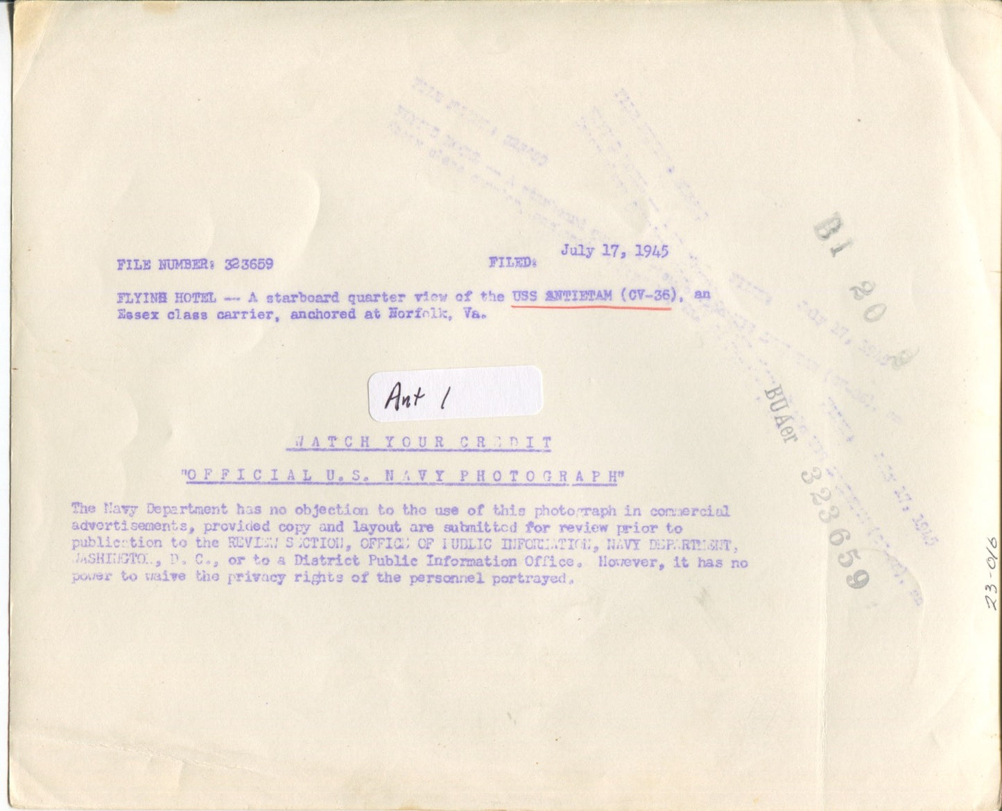 Official Navy Photo of WWII era USS Antietam (CV36)