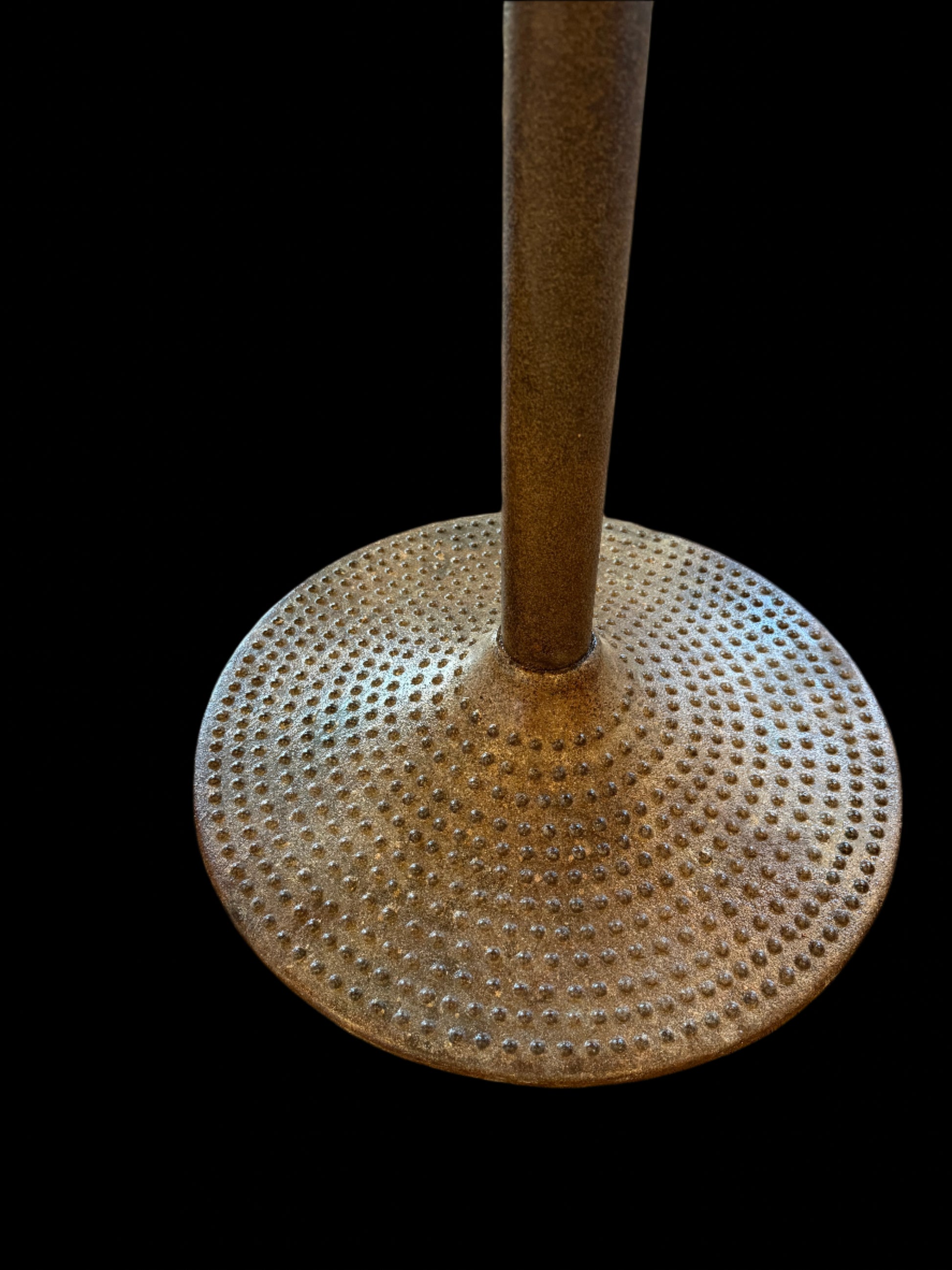 Materials: Burl wood top, hammered brass base