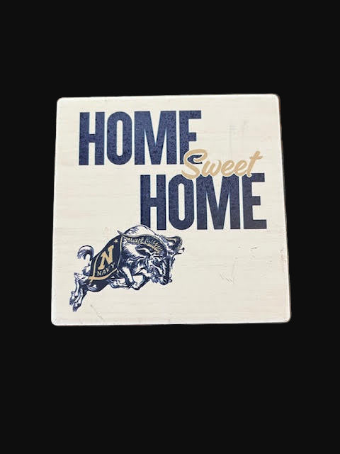 Naval Academy Coaster: Home Sweet Home ceramic coaster featuring the USNA mascot, Bill the Goat.
