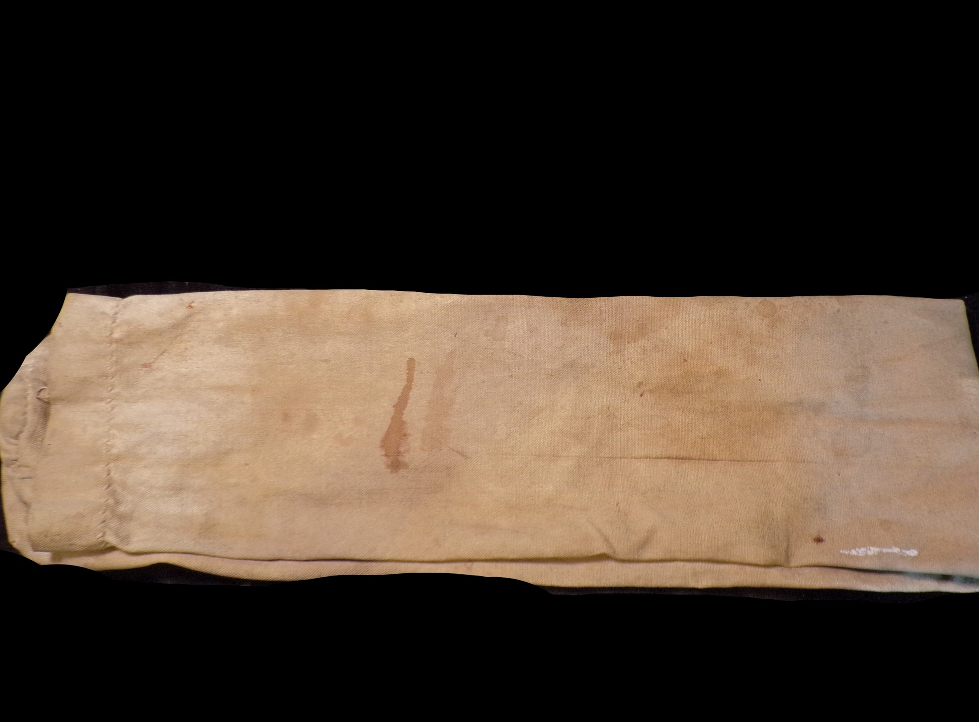 Heavy-duty canvas construction, showing age-appropriate wear and staining.