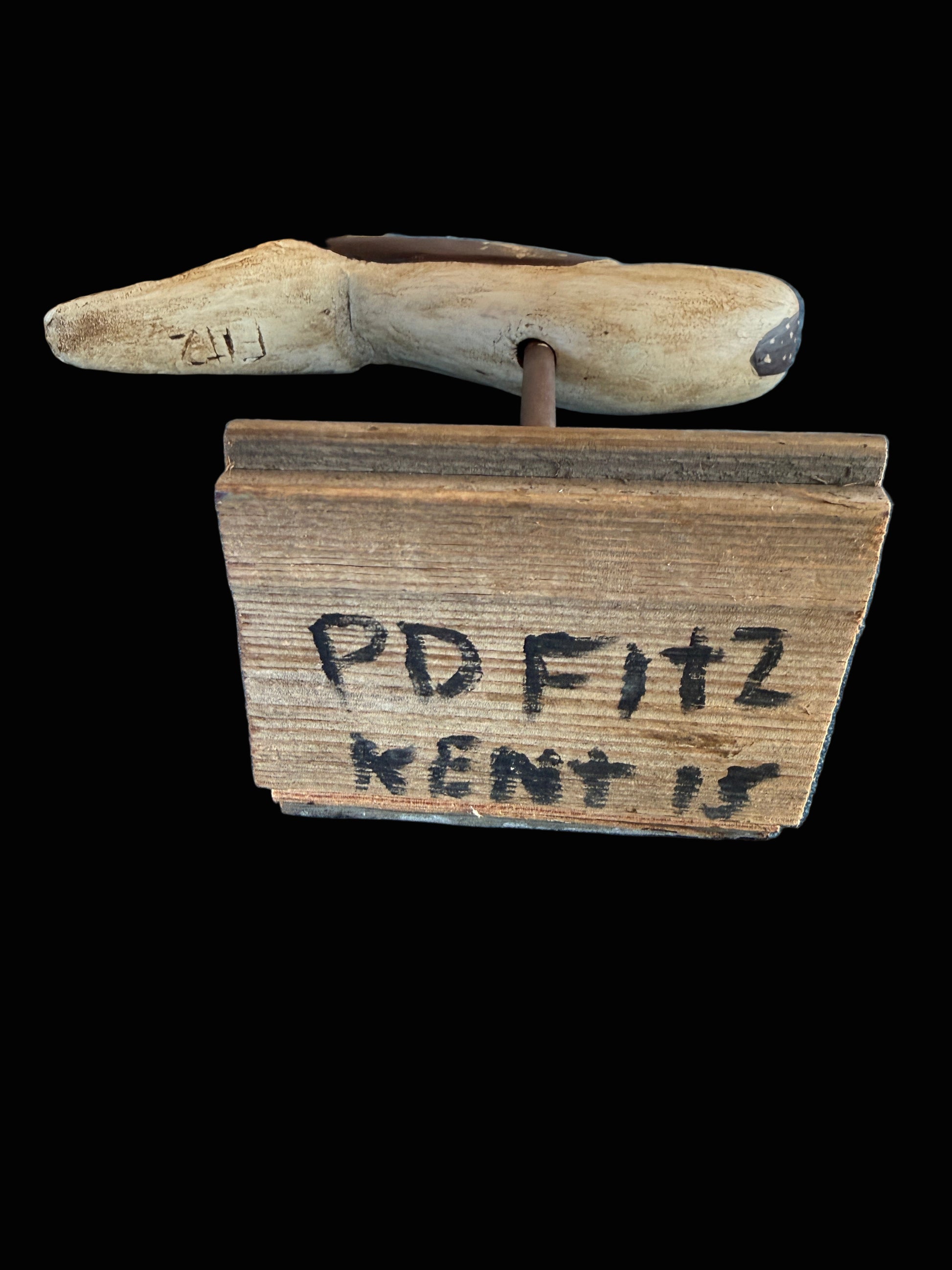 Perched on a simple wooden base, the bird’s graceful, curled posture captures the peaceful stillness of a shorebird at rest. Each carving by Fitzgerald is unique, showcasing his signature tool marks, subtle paintwork, and a timeless folk-art appeal.