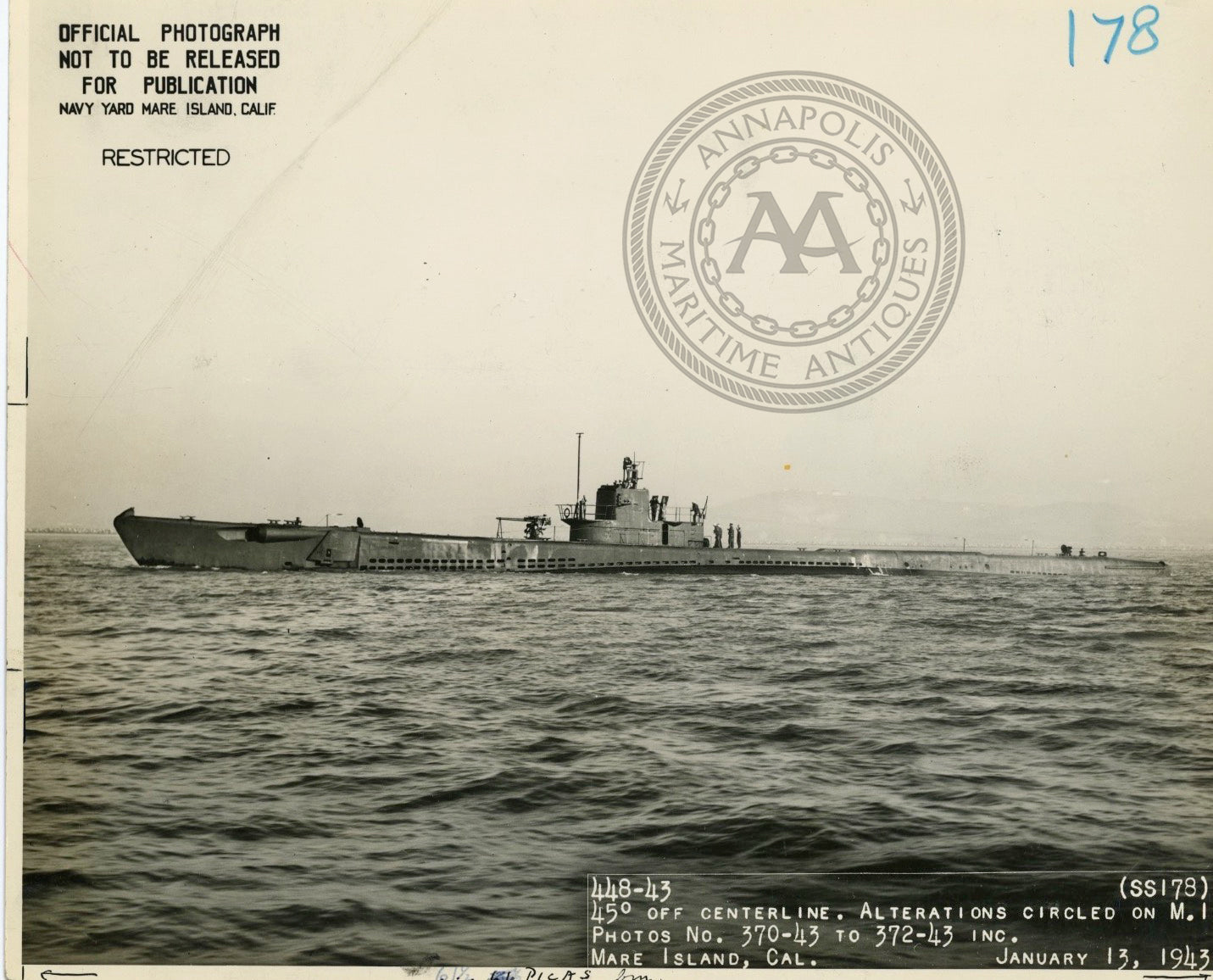 Official Navy Photo of the WWII era USS Permit (SS-178 / P-7) Submarine