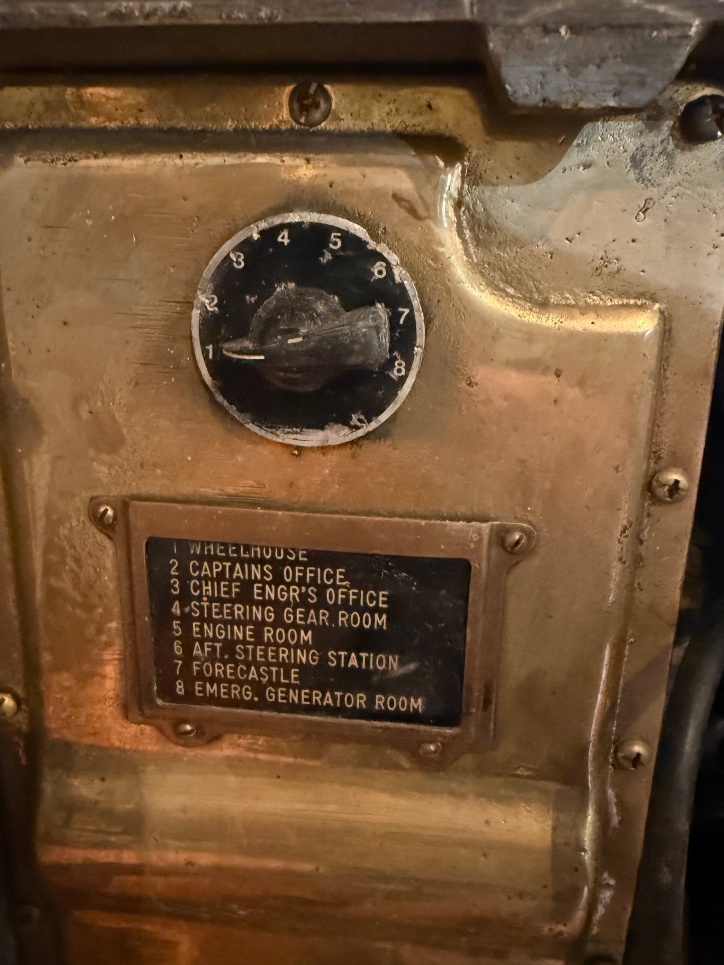 A rare and beautifully aged brass shipboard telephone from the Rose McCann Telephone Company of Brooklyn, NY. Originally used aboard a working vessel, this communication unit allowed officers and crew to speak between essential ship stations using the rotary selector dial. Marked for locations such as the wheelhouse, engine room, and captain’s office, this piece offers a fascinating glimpse into mid-20th century maritime operations.