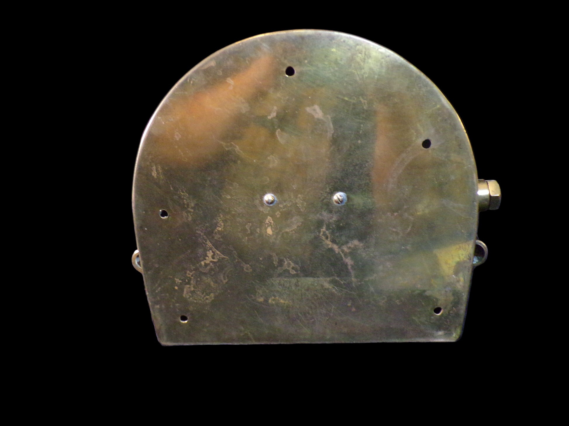 This impressive solid brass navigation lantern once served aboard ship as part of a convoy light signaling system — used to maintain visual contact between vessels running at night without external radio chatter. The deep cobalt blue Fresnel lens focuses light into a precise beam pattern, increasing visibility across the water while preserving night stealth.